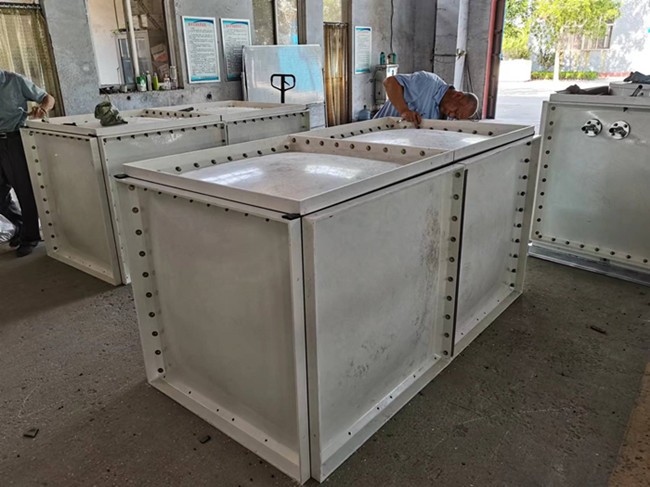玻璃鋼水箱可分為三層結(jié)構(gòu),即內(nèi)襯層、結(jié)構(gòu)層和外表層。其功能各為:內(nèi)襯層主要起耐腐、不滲作用;結(jié)構(gòu)層承受荷載引起的應(yīng)力;外保護層則用于自然老化和摩擦碰撞。